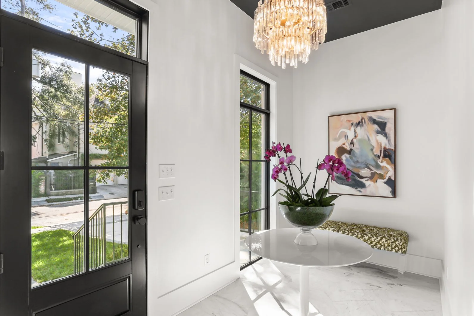 First impressions are everything & that’s when tall, dark ceilings & dramatic chandeliers came into play for this uptown New Orleans foyer.